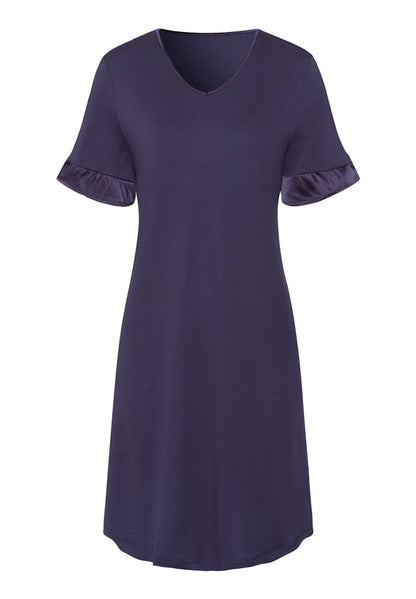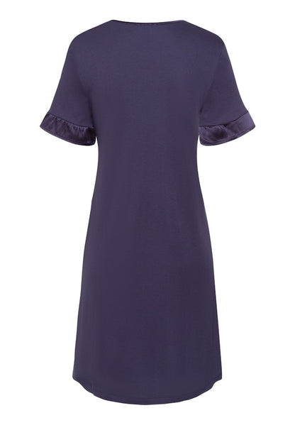 Claire - Short Sleeved Nightdress 95cm Cotton and TENCEL™ in Blue Stone