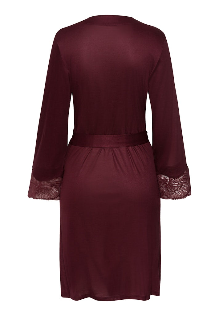 Experience understated elegance with the Lilith Robe. Crafted from soft, flowing micro-modal fabric, it drapes beautifully for a flattering fit. Generous inserts of Jacquardtronic lace add a hint of seductive semi-transparency, enhancing its feminine silhouette. This 100cm robe offers comfort and style, making it an exquisite gift choice for sophisticated nights.