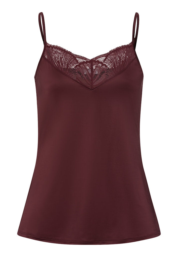 Lilith - Spaghetti Top Viscose with Lace in Vivid Brown