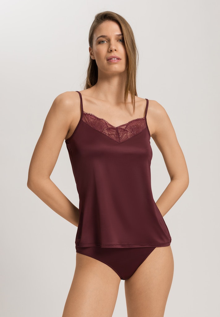 Slip into effortless elegance with the Lilith Spaghetti Strap Top, a luxurious piece crafted from flowing viscose and accented with delicate Jacquardtronic lace. Designed to flatter, its soft drape and subtle sheen offer a sensual silhouette, while the intricate lace detailing adds a romantic, feminine finish. Adjustable spaghetti straps for a custom fit, and vivid brown hue that pairs beautifully with matching briefs.