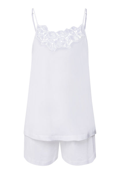 Introducing our Liz Sleeveless Short Pyjamas, the perfect blend of retro charm and luxury. Made with airy cotton jersey or fine cotton batiste, our exclusive embroidery adds a touch of elegance. Perfect for sleeping, lounging, or a day at the beach. Experience the sophistication only HANRO can provide.