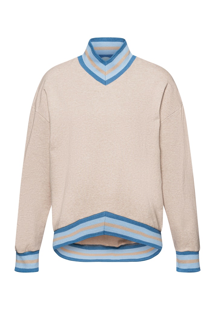 This fashionable highneck sweatshirt features multicoloured ribbed bands on the sleeves, hem and neckline. This sweatshirt pairs perfectly with the coordinating trousers from the collection.
