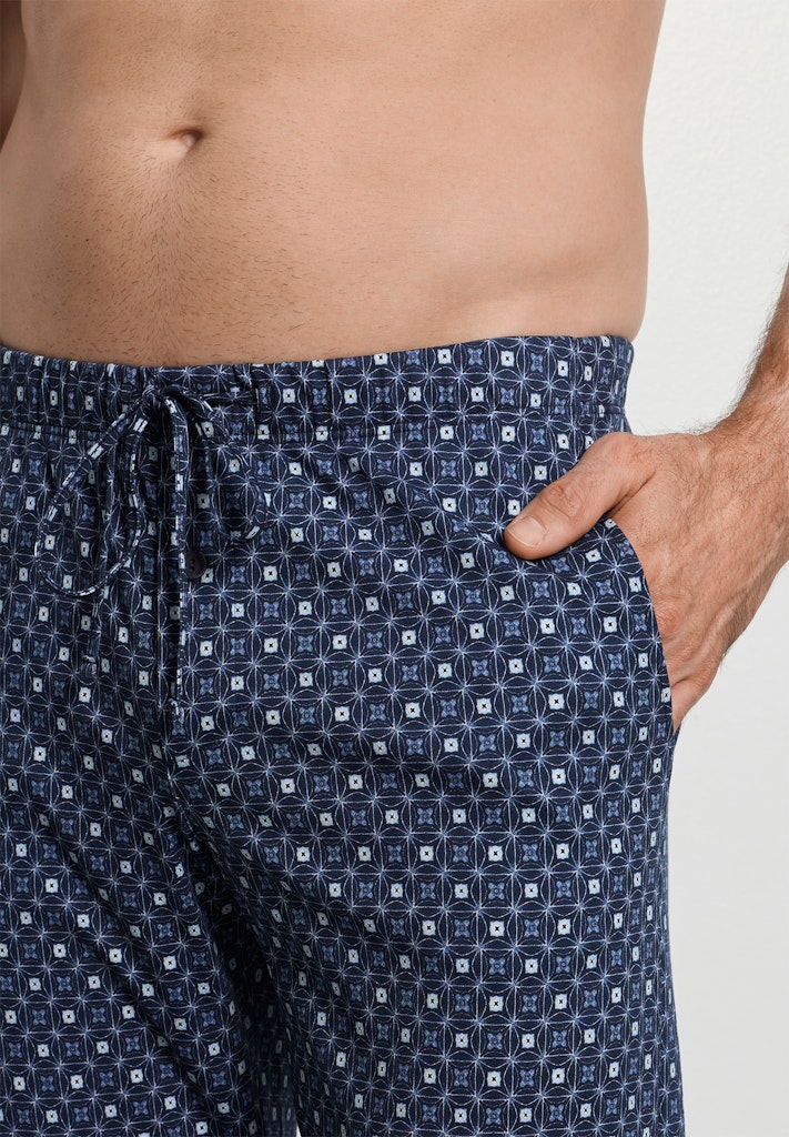 Night & Day Long Pants bring effortless versatility to your wardrobe with their refined maritime aesthetic. Crafted from a premium cotton, these jersey style trousers feature a striking kaleidoscope design in sophisticated shades of blue. Designed for the modern lifestyle, they include practical drawstring detailing and functional pockets. Part of our new mix & match collection, they pair seamlessly with Living Shirts in our latest trending colours, offering endless styling possibilities for a cohesive, contemporary look.