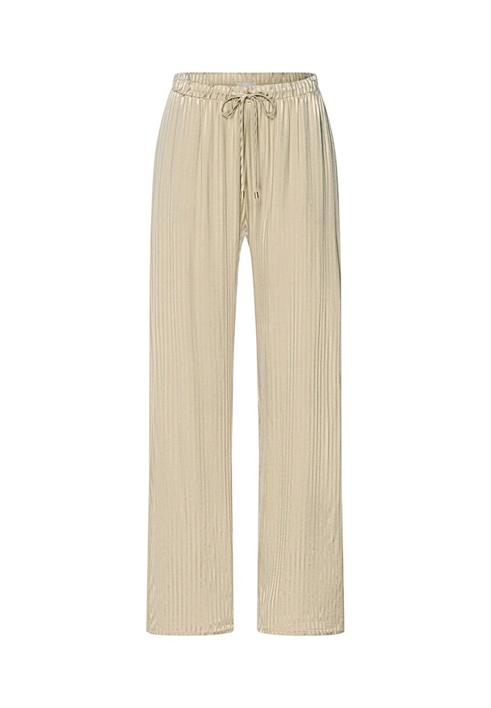 Discover effortless elegance with these versatile long pants, crafted from soft viscose woven fabric that feels luxurious against the skin. Featuring delicate tulle trim detailing, they seamlessly transition from bedtime to relaxation moments. The sophisticated olive stem hue complements both classic and contemporary pyjama styling, making them an essential piece for your mix and match collection. Perfect for creating your ideal sleep and lounge wardrobe.