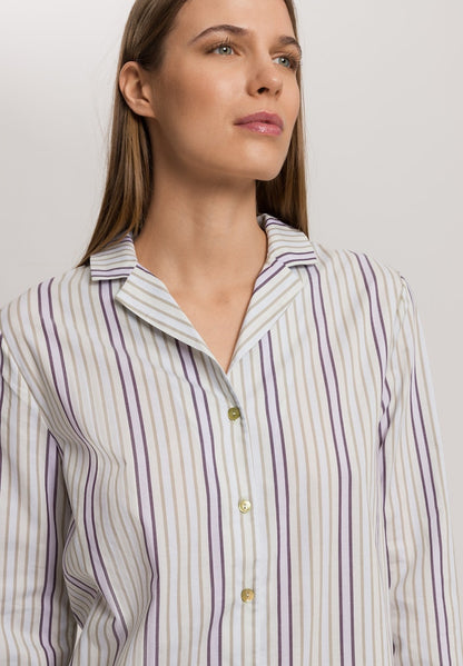 Sleep & Lounge - Long Sleeved Oversized Shirt 100% Cotton in Beryl Stripe