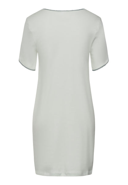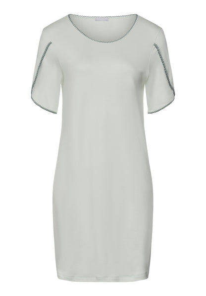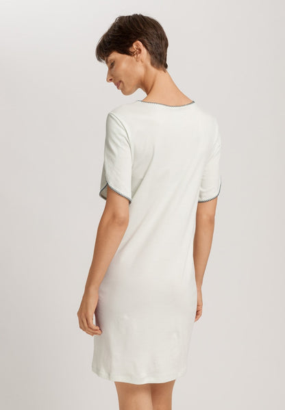 Introducing Una - the ultimate indulgence in cotton nightwear. This short-sleeved nightdress boasts a modern puristic design, complemented by classic HANRO details. Made from soft, mercerized cotton interlock, its delicate stitch finishes and refined tulip-style sleeve trims exude a sophisticated charm. Pamper yourself with comfort and style.