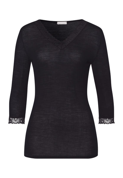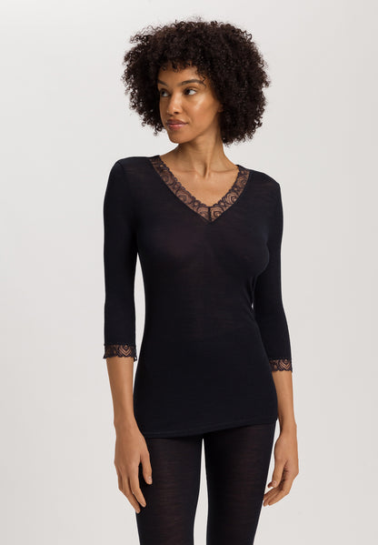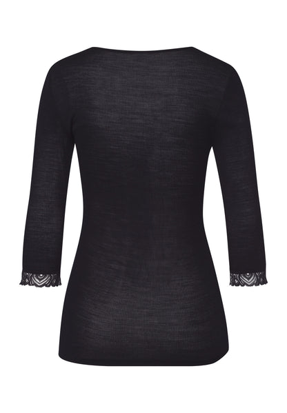 Woolen Lace - Cropped Sleeved Top Wool and Silk with Lace in Black