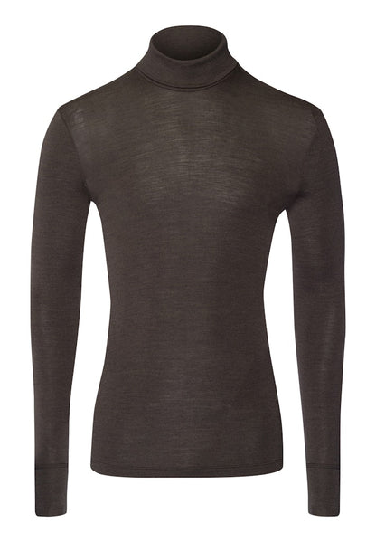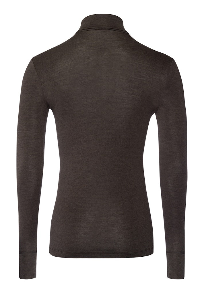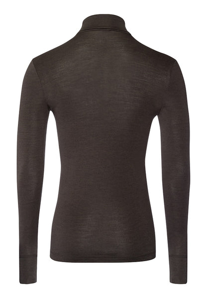 Woolen Silk - Long Sleeved Turtle-Neck Top Wool and Silk in Earthy Ink